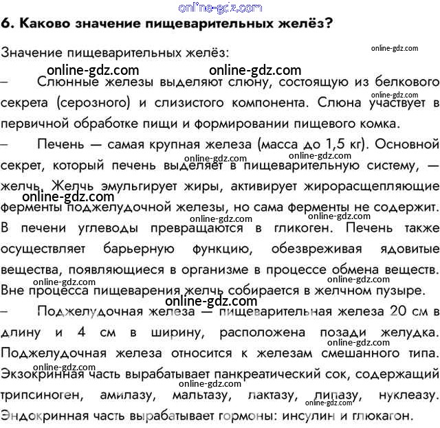 Готовые домашние задания по Биологии за 8 класс Учебник Пасечник, Каменский Линия жизни 2016 - Вопросы §24. Питание и его значение. Органы пищеварения и их функции 6