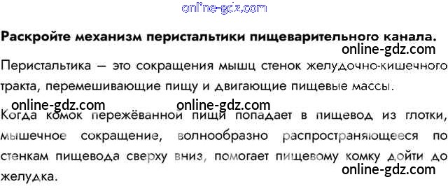 Готовые домашние задания по Биологии за 8 класс Учебник Пасечник, Каменский Линия жизни 2016 - Задания §26. Пищеварение в желудке и кишечнике 1