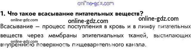 Готовые домашние задания по Биологии за 8 класс Учебник Пасечник, Каменский Линия жизни 2016 - Вопросы §27. Всасывание питательных веществ в кровь 1