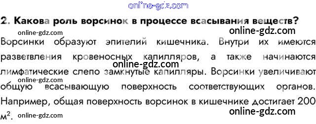 Готовые домашние задания по Биологии за 8 класс Учебник Пасечник, Каменский Линия жизни 2016 - Вопросы §27. Всасывание питательных веществ в кровь 2