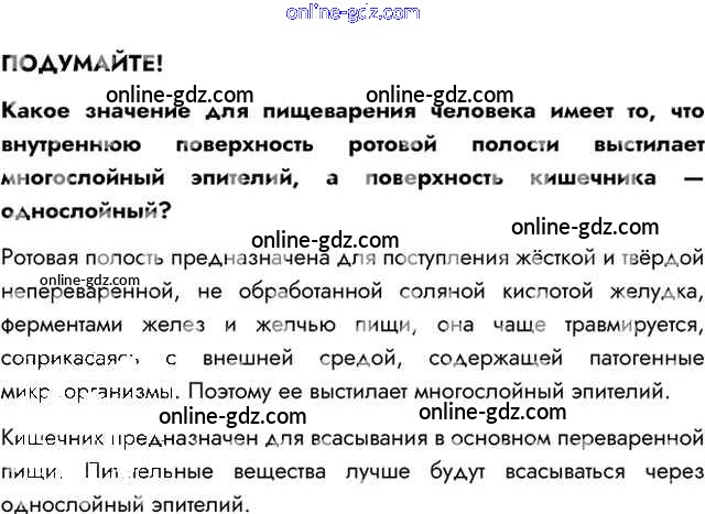 Готовые домашние задания по Биологии за 8 класс Учебник Пасечник, Каменский Линия жизни 2016 - Подумайте §27. Всасывание питательных веществ в кровь 1