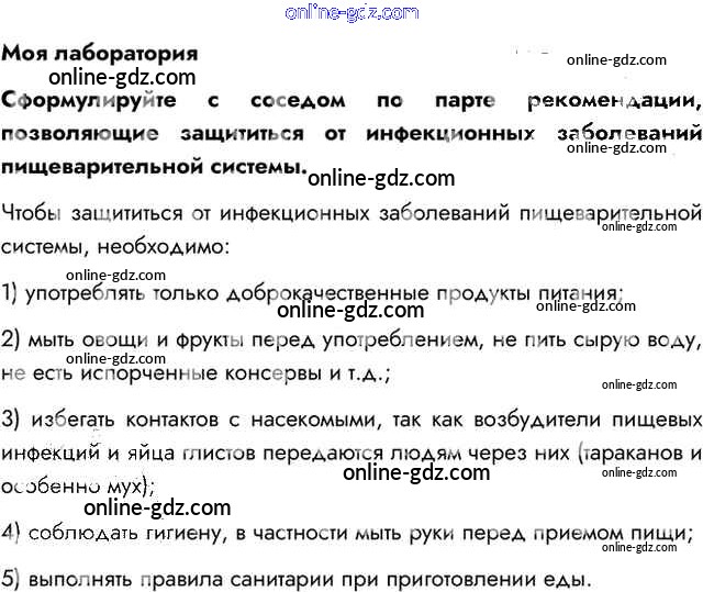 Готовые домашние задания по Биологии за 8 класс Учебник Пасечник, Каменский Линия жизни 2016 - Моя лаборатория §28. Регуляция пищеварения. Гигиена питания 1