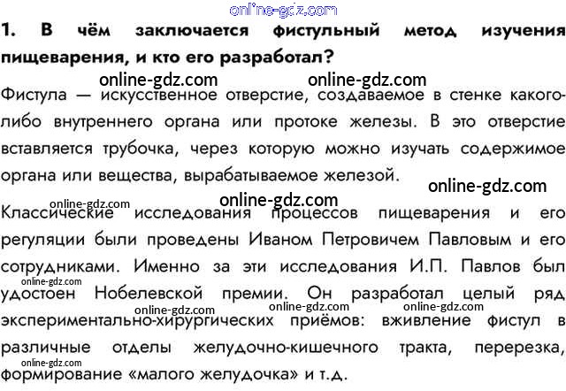 Готовые домашние задания по Биологии за 8 класс Учебник Пасечник, Каменский Линия жизни 2016 - Вопросы §28. Регуляция пищеварения. Гигиена питания 1