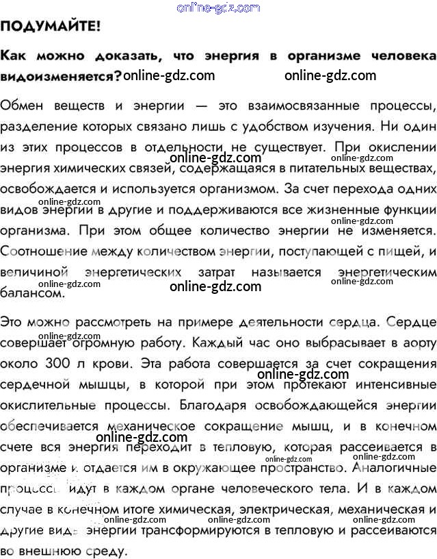 Готовые домашние задания по Биологии за 8 класс Учебник Пасечник, Каменский Линия жизни 2016 - Подумайте §29. Пластический и энергетический обмен 1