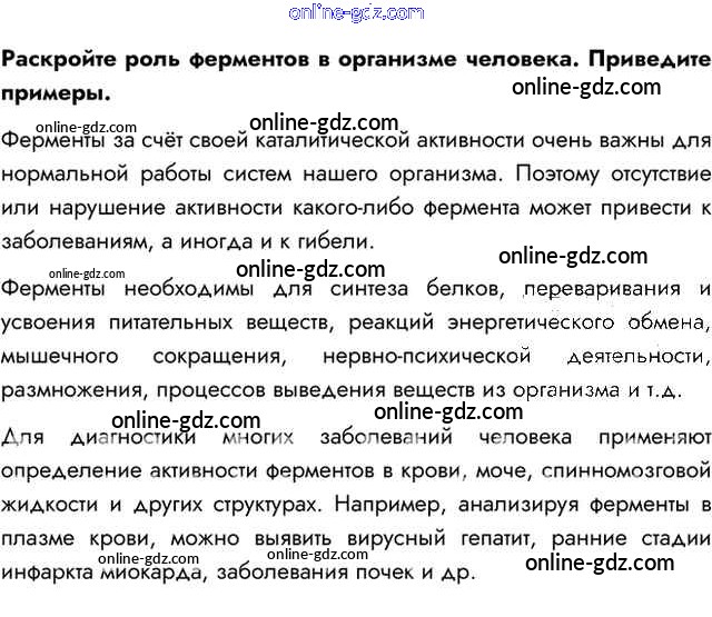 Готовые домашние задания по Биологии за 8 класс Учебник Пасечник, Каменский Линия жизни 2016 - Задания §30. Ферменты и их роль в организме человека 1
