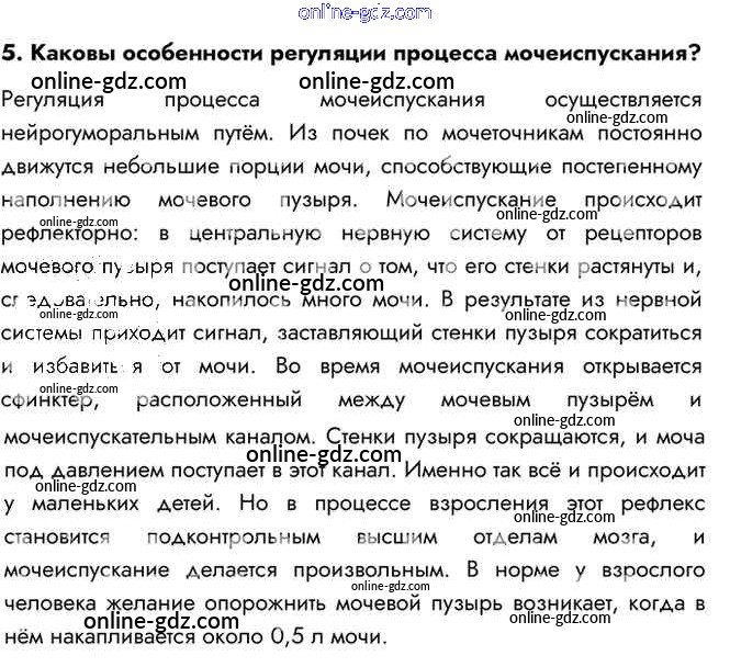Готовые домашние задания по Биологии за 8 класс Учебник Пасечник, Каменский Линия жизни 2016 - Вопросы §33. Выделение и его значение. Органы мочевыделения 5