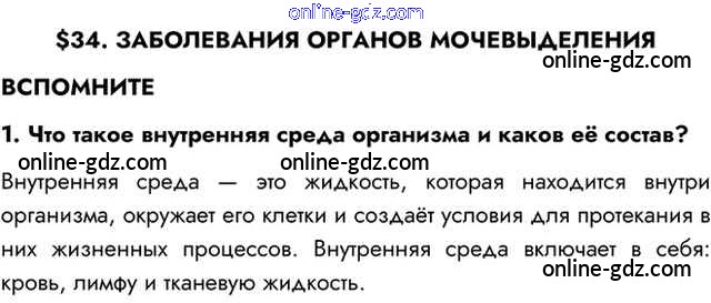 Готовые домашние задания по Биологии за 8 класс Учебник Пасечник, Каменский Линия жизни 2016 - Вспомните §34. Заболевания органов мочевыделения 1