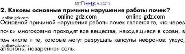 Готовые домашние задания по Биологии за 8 класс Учебник Пасечник, Каменский Линия жизни 2016 - Вопросы §34. Заболевания органов мочевыделения 2