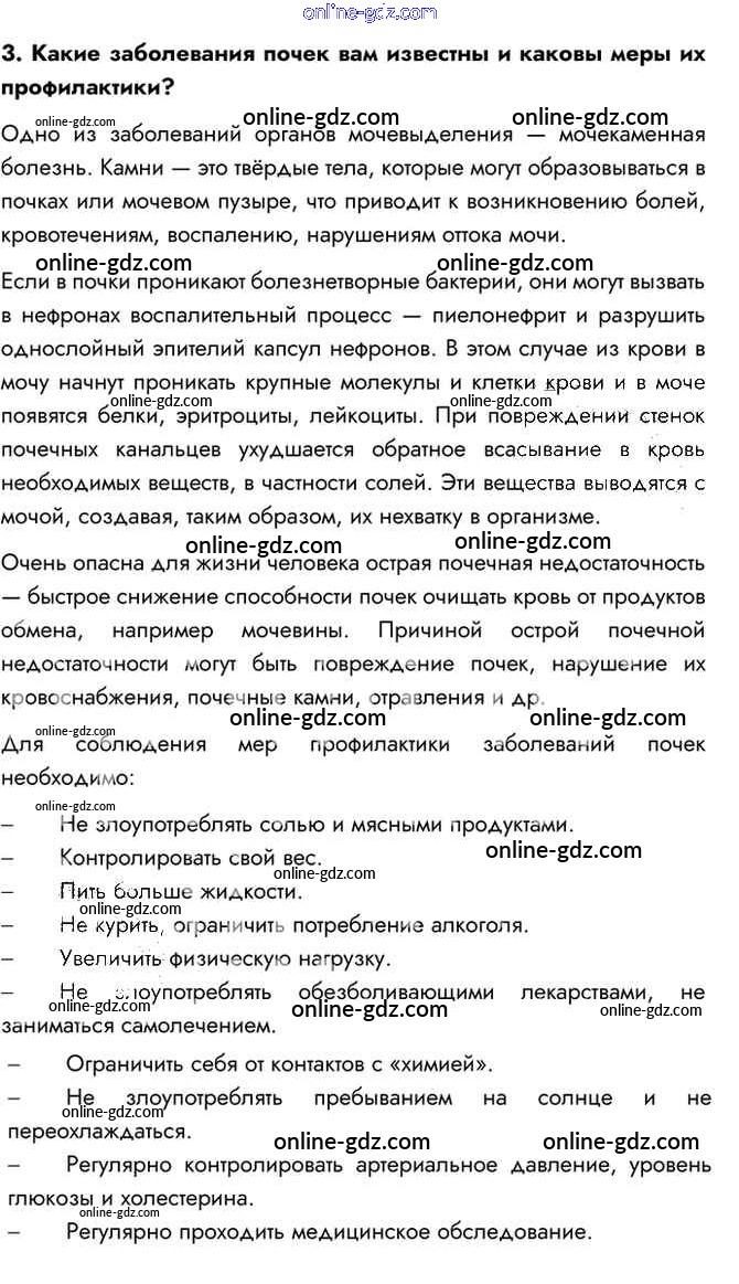 Готовые домашние задания по Биологии за 8 класс Учебник Пасечник, Каменский Линия жизни 2016 - Вопросы §34. Заболевания органов мочевыделения 3