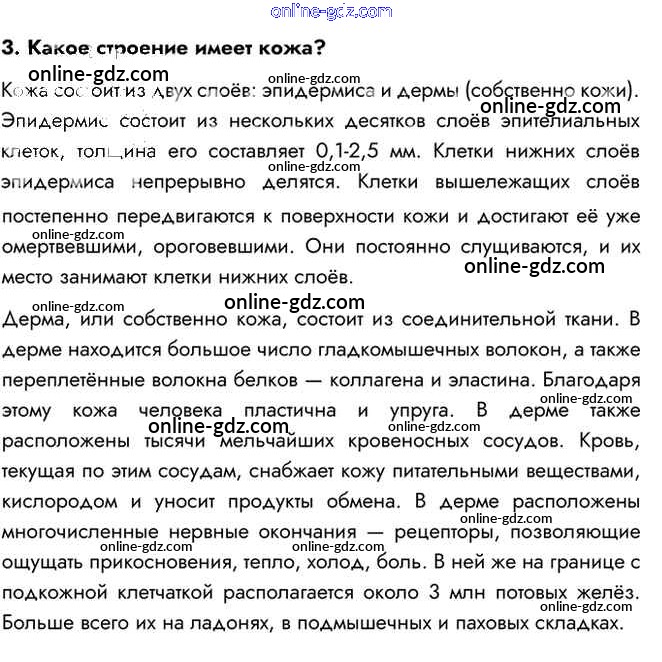 Готовые домашние задания по Биологии за 8 класс Учебник Пасечник, Каменский Линия жизни 2016 - Вопросы §35. Наружные покровы тела. Строение и функции кожи 3