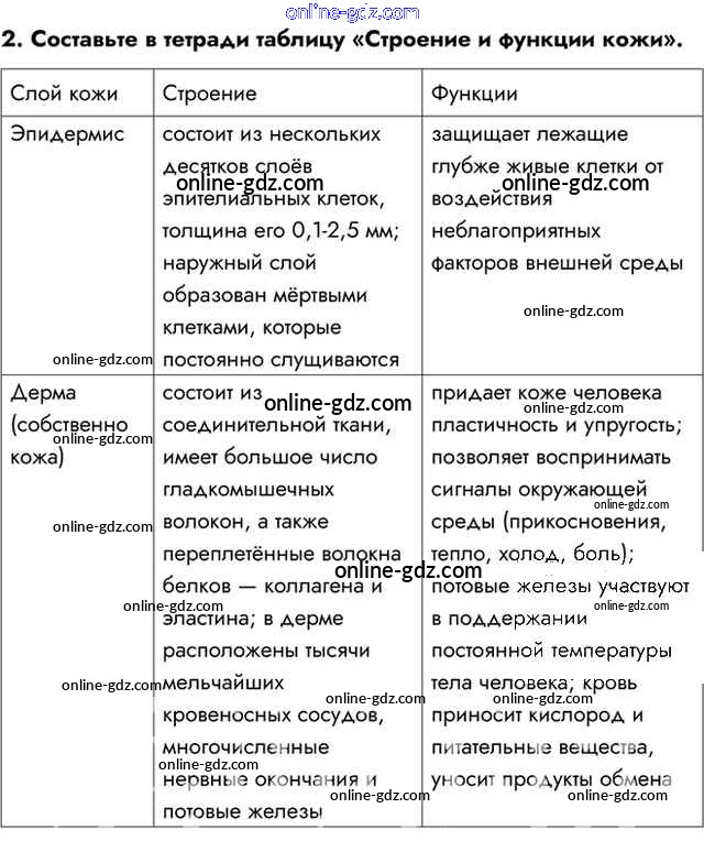 Готовые домашние задания по Биологии за 8 класс Учебник Пасечник, Каменский Линия жизни 2016 - Задания §35. Наружные покровы тела. Строение и функции кожи 2