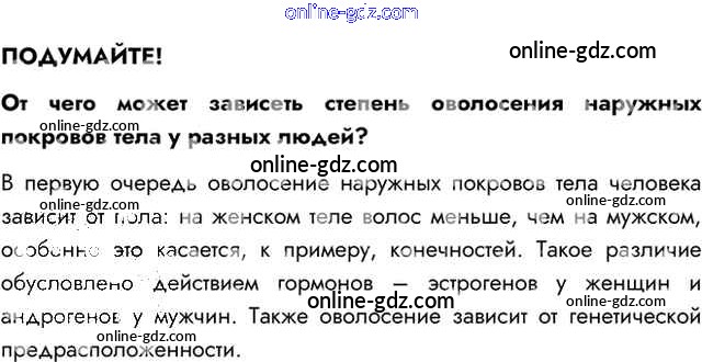 Готовые домашние задания по Биологии за 8 класс Учебник Пасечник, Каменский Линия жизни 2016 - Подумайте §35. Наружные покровы тела. Строение и функции кожи 1