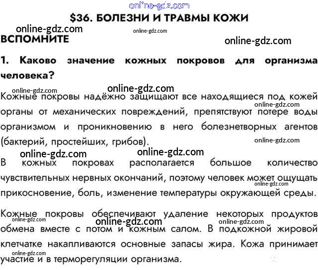 Готовые домашние задания по Биологии за 8 класс Учебник Пасечник, Каменский Линия жизни 2016 - Вспомните §36. Болезни и травмы кожи 1