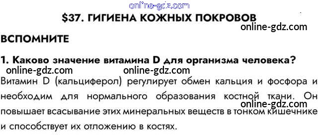 Готовые домашние задания по Биологии за 8 класс Учебник Пасечник, Каменский Линия жизни 2016 - Вспомните §37. Гигиена кожных покровов 1