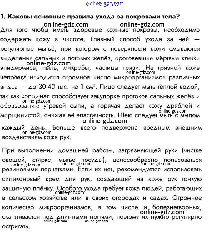 Готовые домашние задания по Биологии за 8 класс Учебник Пасечник, Каменский Линия жизни 2016 - Вопросы §37. Гигиена кожных покровов 1