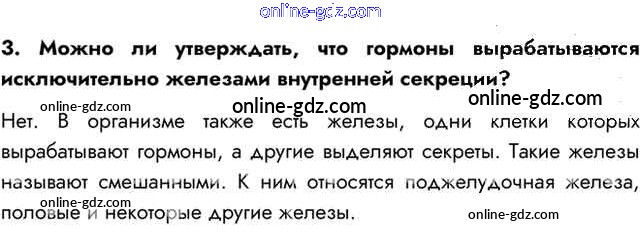 Готовые домашние задания по Биологии за 8 класс Учебник Пасечник, Каменский Линия жизни 2016 - Вопросы §38. Железы внутренней секреции и их функции 3