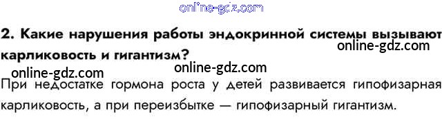 Готовые домашние задания по Биологии за 8 класс Учебник Пасечник, Каменский Линия жизни 2016 - Вопросы §39. Работа эндокринной системы и её нарушения 2
