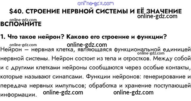 Готовые домашние задания по Биологии за 8 класс Учебник Пасечник, Каменский Линия жизни 2016 - Вспомните §40. Строение нервной системы и её значение 1