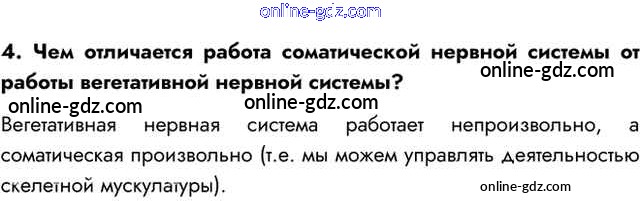 Готовые домашние задания по Биологии за 8 класс Учебник Пасечник, Каменский Линия жизни 2016 - Вопросы §40. Строение нервной системы и её значение 4