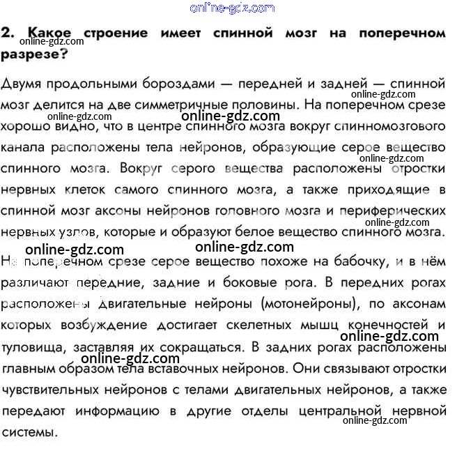 Готовые домашние задания по Биологии за 8 класс Учебник Пасечник, Каменский Линия жизни 2016 - Вопросы §41. Спинной мозг 2