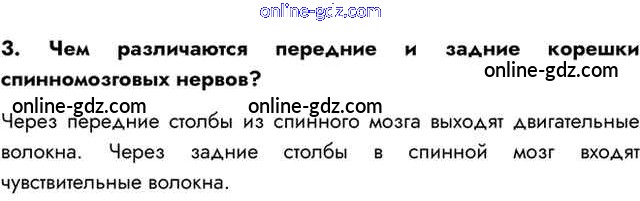 Готовые домашние задания по Биологии за 8 класс Учебник Пасечник, Каменский Линия жизни 2016 - Вопросы §41. Спинной мозг 3