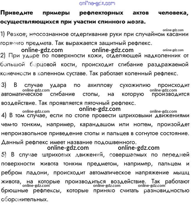 Готовые домашние задания по Биологии за 8 класс Учебник Пасечник, Каменский Линия жизни 2016 - Задания §41. Спинной мозг 1