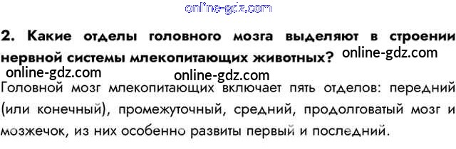 Готовые домашние задания по Биологии за 8 класс Учебник Пасечник, Каменский Линия жизни 2016 - Вспомните §42. Головной мозг 2