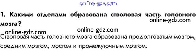 Готовые домашние задания по Биологии за 8 класс Учебник Пасечник, Каменский Линия жизни 2016 - Вопросы §42. Головной мозг 1