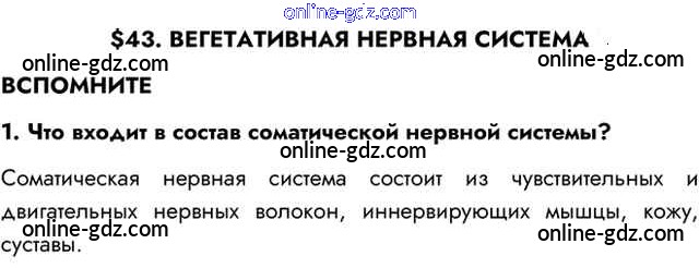 Готовые домашние задания по Биологии за 8 класс Учебник Пасечник, Каменский Линия жизни 2016 - Вспомните §43. Вегетативная нервная система 1