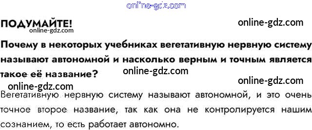 Готовые домашние задания по Биологии за 8 класс Учебник Пасечник, Каменский Линия жизни 2016 - Подумайте §43. Вегетативная нервная система 1