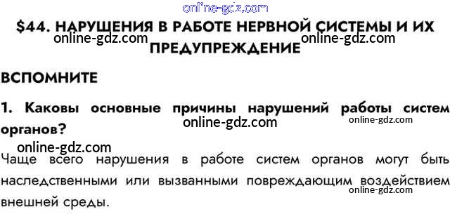 Готовые домашние задания по Биологии за 8 класс Учебник Пасечник, Каменский Линия жизни 2016 - Вспомните §44. Нарушения в работе нервной системы и их предупреждение 1