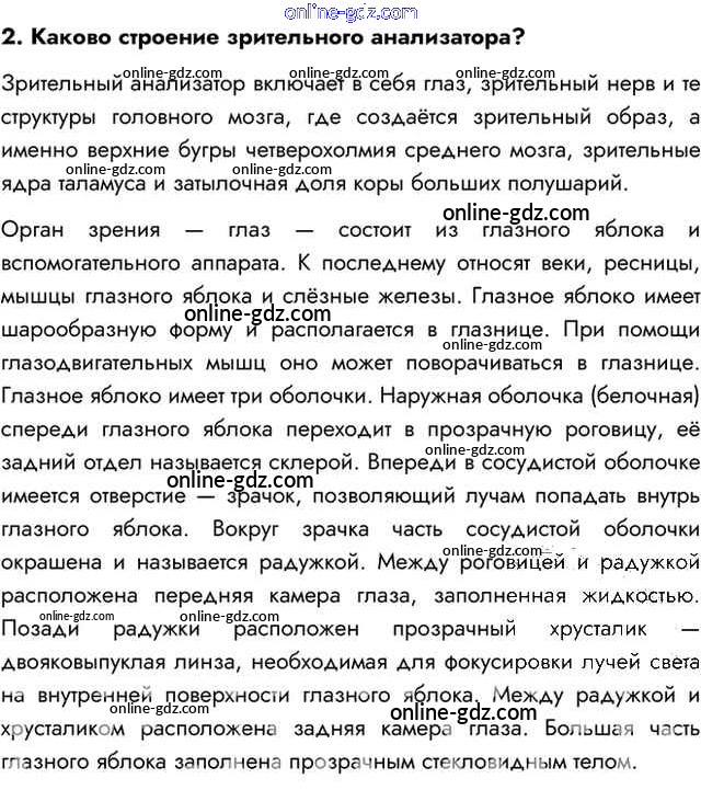 Готовые домашние задания по Биологии за 8 класс Учебник Пасечник, Каменский Линия жизни 2016 - Вопросы §45. Понятие об анализаторах. Зрительный анализатор 2