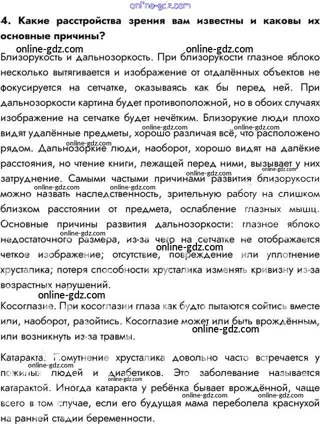 Готовые домашние задания по Биологии за 8 класс Учебник Пасечник, Каменский Линия жизни 2016 - Вопросы §45. Понятие об анализаторах. Зрительный анализатор 4