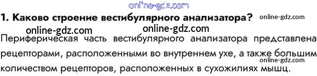 Готовые домашние задания по Биологии за 8 класс Учебник Пасечник, Каменский Линия жизни 2016 - Вопросы §47. Вестибулярный анализатор. Мышечное чувство. Осязание 1