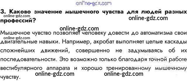 Готовые домашние задания по Биологии за 8 класс Учебник Пасечник, Каменский Линия жизни 2016 - Вопросы §47. Вестибулярный анализатор. Мышечное чувство. Осязание 3
