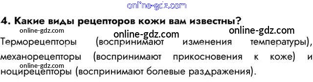 Готовые домашние задания по Биологии за 8 класс Учебник Пасечник, Каменский Линия жизни 2016 - Вопросы §47. Вестибулярный анализатор. Мышечное чувство. Осязание 4