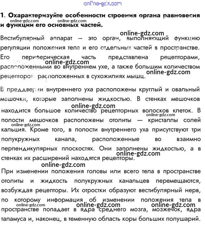 Готовые домашние задания по Биологии за 8 класс Учебник Пасечник, Каменский Линия жизни 2016 - Задания §47. Вестибулярный анализатор. Мышечное чувство. Осязание 1