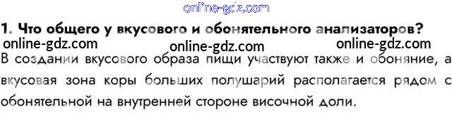 Готовые домашние задания по Биологии за 8 класс Учебник Пасечник, Каменский Линия жизни 2016 - Вопросы §48. Вкусовой и обонятельный анализаторы. Боль 1