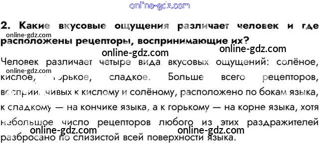 Готовые домашние задания по Биологии за 8 класс Учебник Пасечник, Каменский Линия жизни 2016 - Вопросы §48. Вкусовой и обонятельный анализаторы. Боль 2