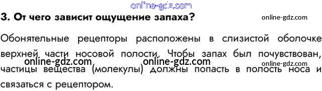 Готовые домашние задания по Биологии за 8 класс Учебник Пасечник, Каменский Линия жизни 2016 - Вопросы §48. Вкусовой и обонятельный анализаторы. Боль 3