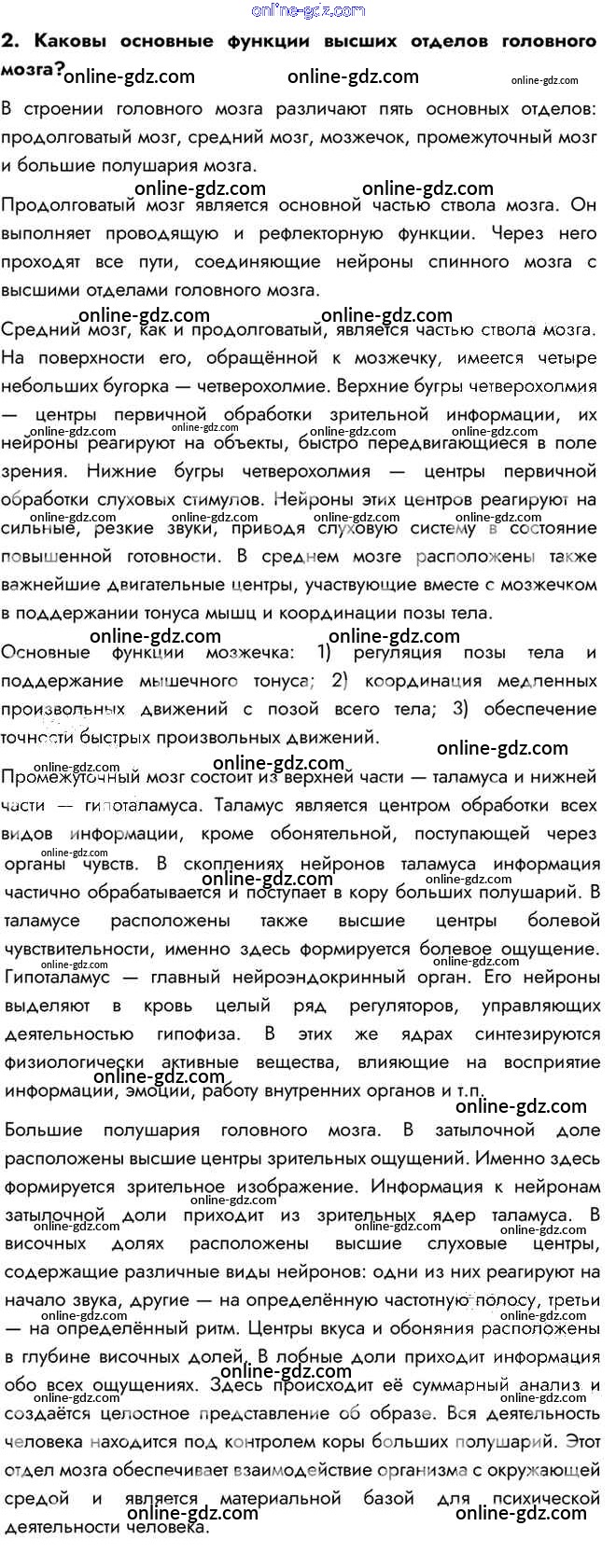Готовые домашние задания по Биологии за 8 класс Учебник Пасечник, Каменский Линия жизни 2016 - Вспомните §49. Высшая нервная деятельность. Рефлексы 2