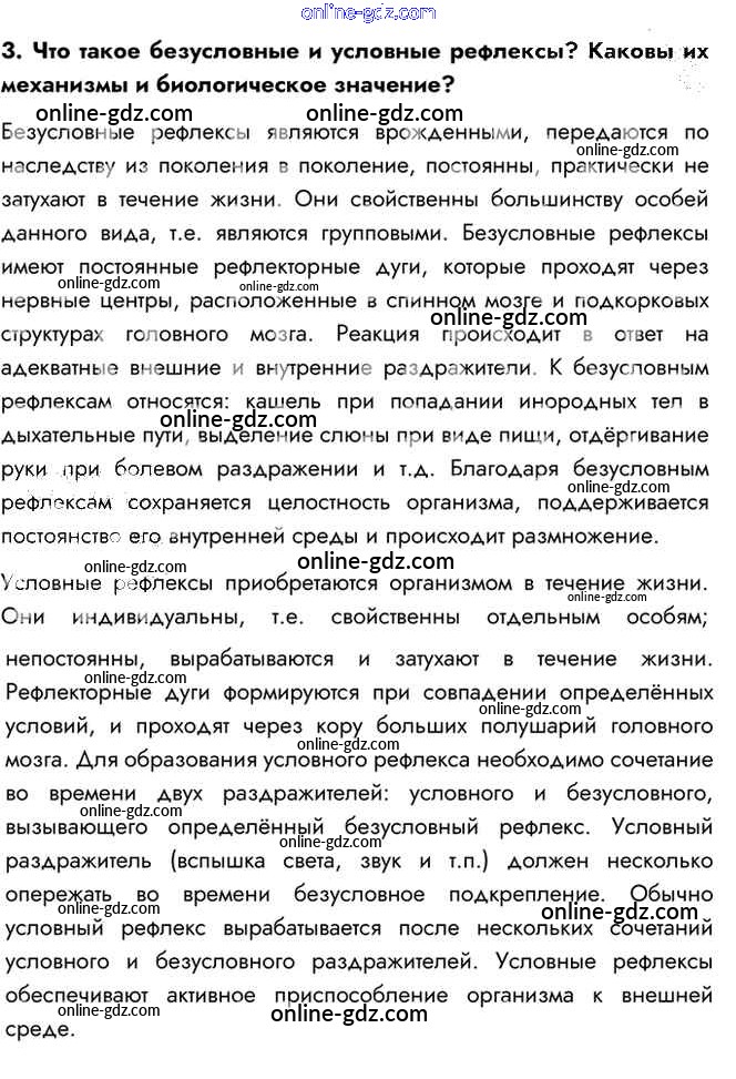 Готовые домашние задания по Биологии за 8 класс Учебник Пасечник, Каменский Линия жизни 2016 - Вопросы §49. Высшая нервная деятельность. Рефлексы 3