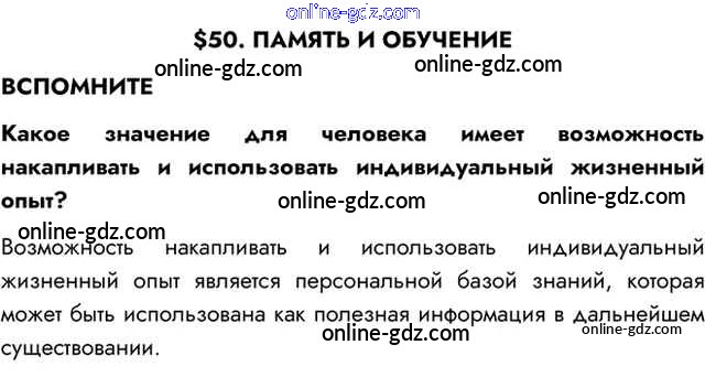 Готовые домашние задания по Биологии за 8 класс Учебник Пасечник, Каменский Линия жизни 2016 - Вспомните §50. Память и обучение 1