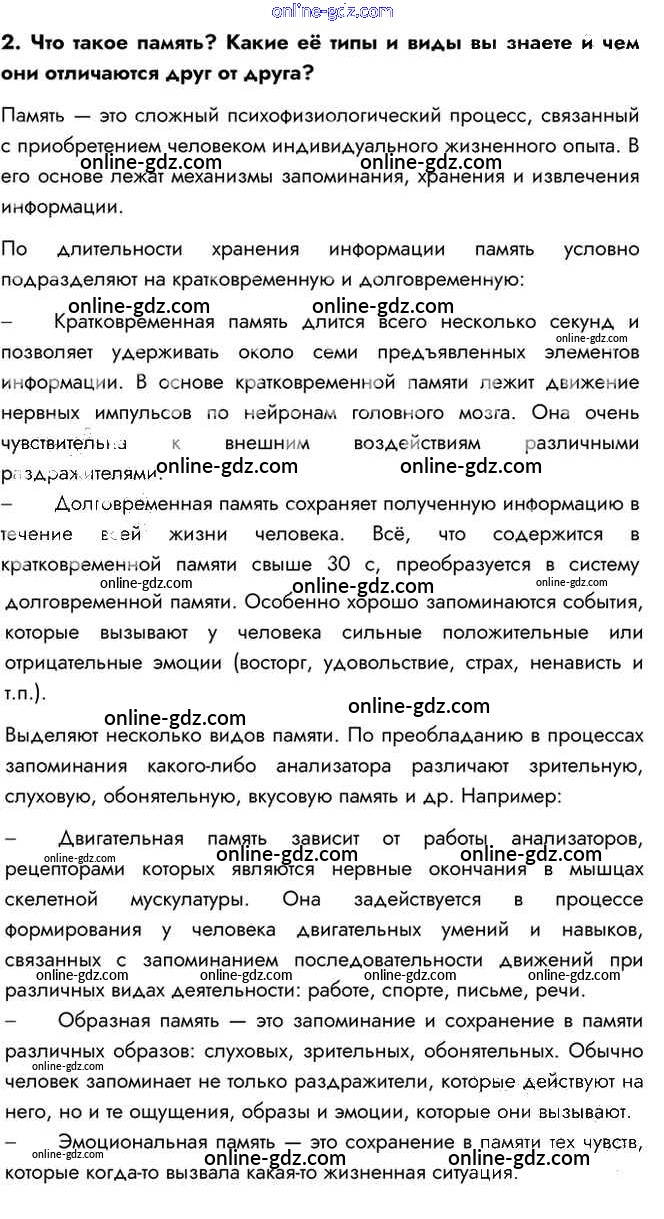 Готовые домашние задания по Биологии за 8 класс Учебник Пасечник, Каменский Линия жизни 2016 - Вопросы §50. Память и обучение 2