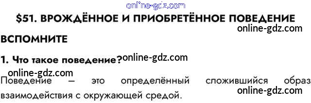 Готовые домашние задания по Биологии за 8 класс Учебник Пасечник, Каменский Линия жизни 2016 - Вспомните §51. Врождённое и приобретённое поведение 1