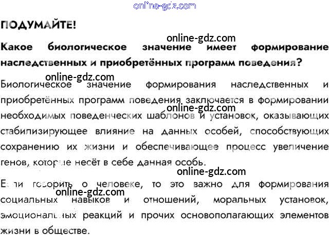 Готовые домашние задания по Биологии за 8 класс Учебник Пасечник, Каменский Линия жизни 2016 - Подумайте §51. Врождённое и приобретённое поведение 1