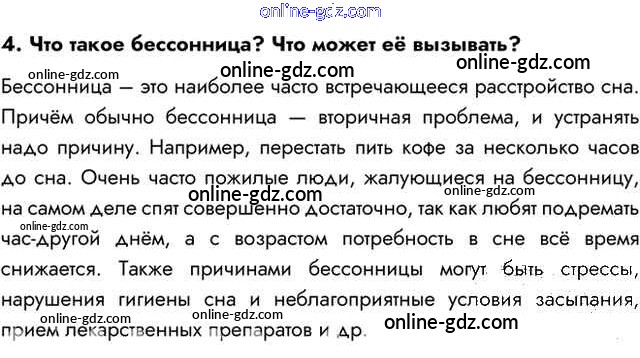 Готовые домашние задания по Биологии за 8 класс Учебник Пасечник, Каменский Линия жизни 2016 - Вопросы §52. Сон и бодрствование 4
