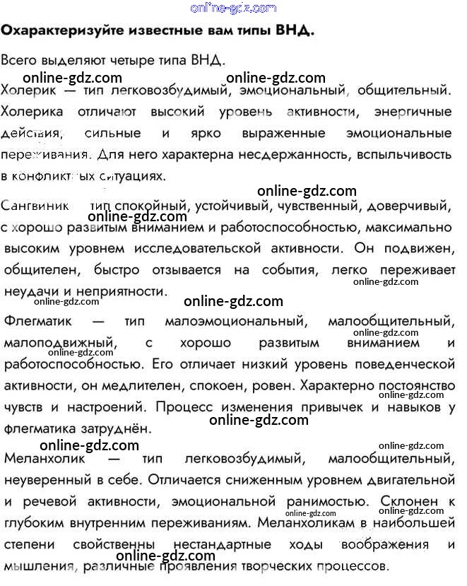 Готовые домашние задания по Биологии за 8 класс Учебник Пасечник, Каменский Линия жизни 2016 - Задания §53. Особенности высшей нервной деятельности человека 1