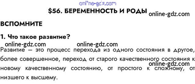 Готовые домашние задания по Биологии за 8 класс Учебник Пасечник, Каменский Линия жизни 2016 - Вспомните §56. Беременность и роды 1