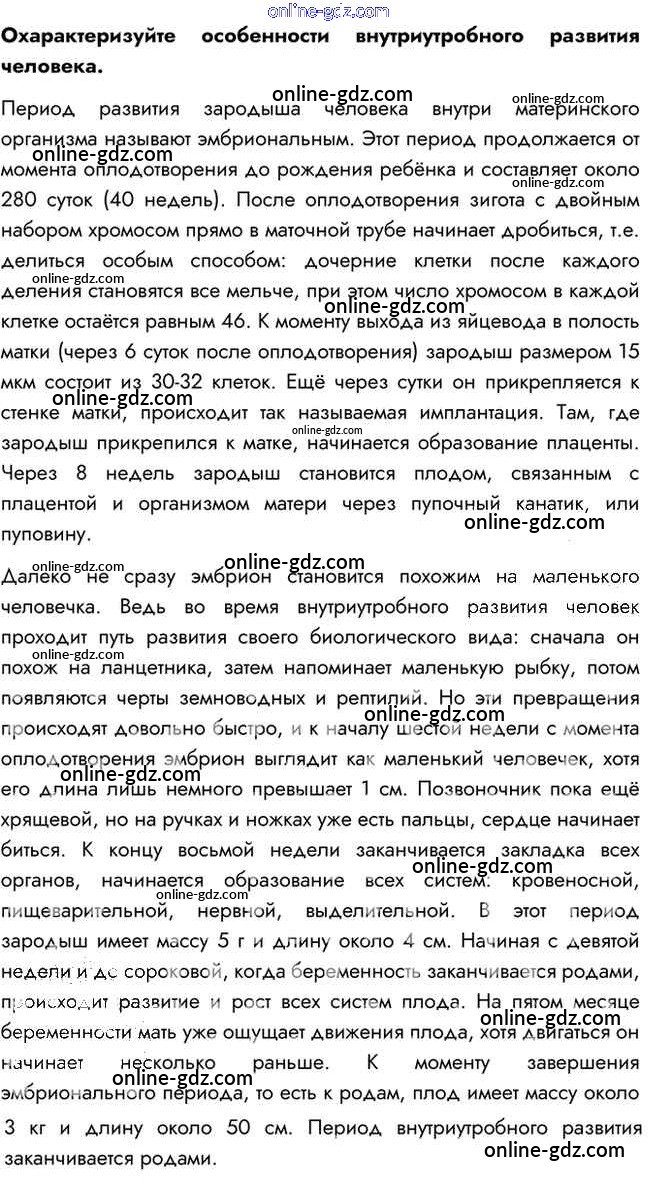 Готовые домашние задания по Биологии за 8 класс Учебник Пасечник, Каменский Линия жизни 2016 - Задания §56. Беременность и роды 1